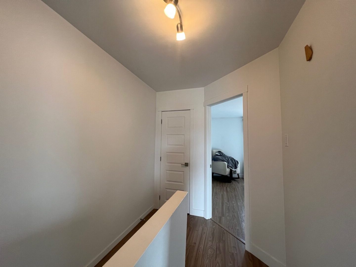 À l’étage, profitez d’une chambre des maîtres de grande dimension avec garde-robe spacieux, ainsi qu’une deuxième chambre confortable munie d’un walk-in.